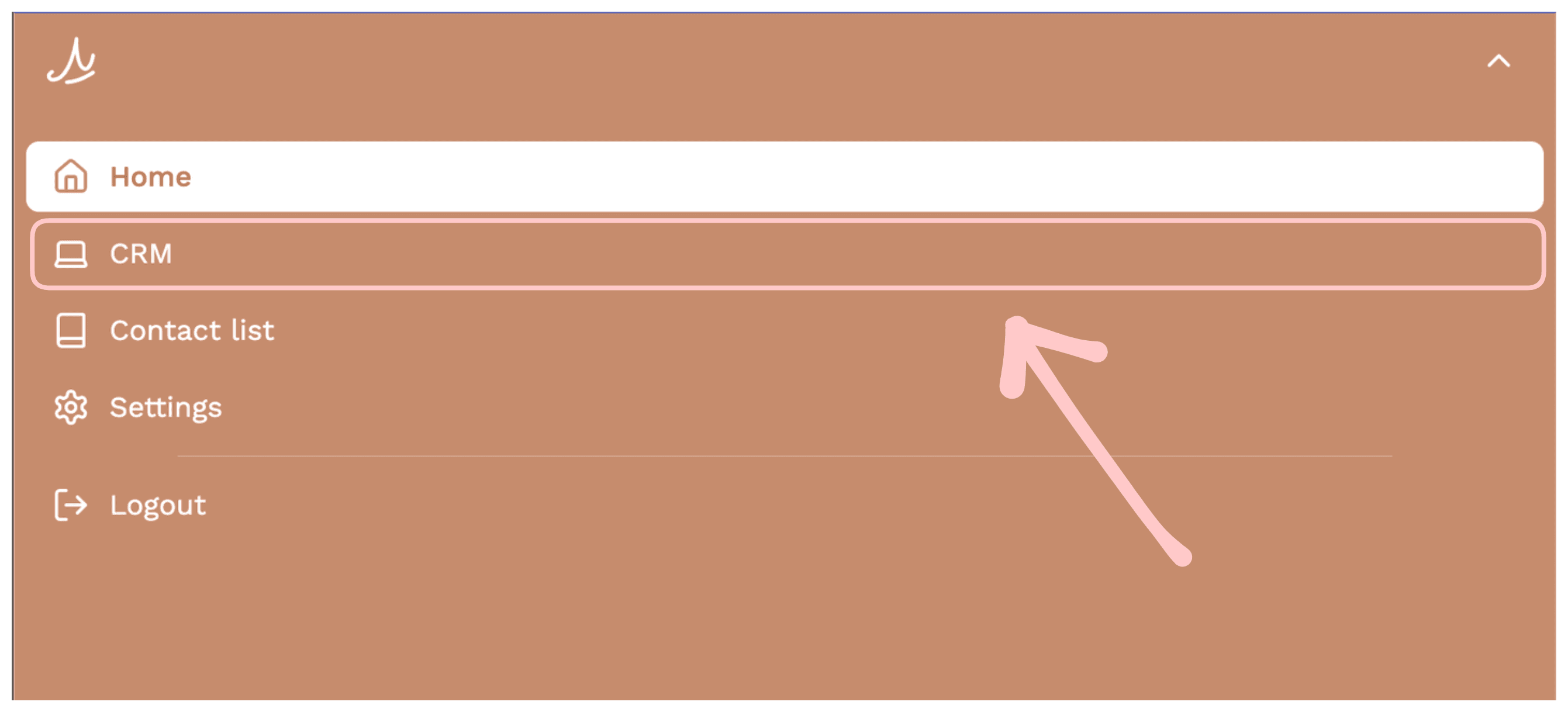 Tap or click on "CRM" in the main menu to go to the CRM.